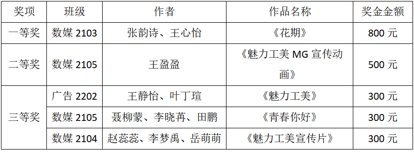 最终,大赛评选出了视频类获奖作品5组,平面类获奖作品6组,合计11组获奖作品。评选标准包括是否符合比赛标准、是否原创、是否具有创新性、整体结构如何、细节是否到位等多方面,评委们严格、严谨的评选态度是保证高水平作品获得荣誉、体现其价值和水平的必要条件,也有利于促进以后参赛选手更加努力地创作、打磨自己的作品,从而进一步提升参赛作品质量水平。