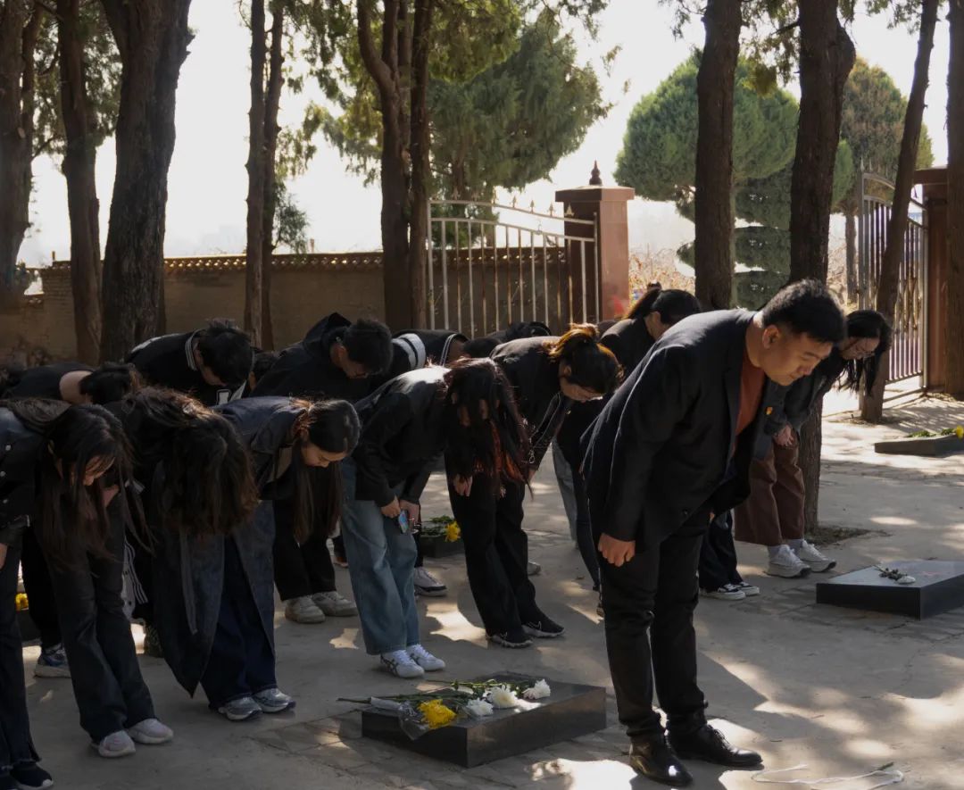 默哀过后,全体师生向英烈们敬献鲜花,深切悼念为中国革命事业前赴后继、英勇献身的革命先烈们。