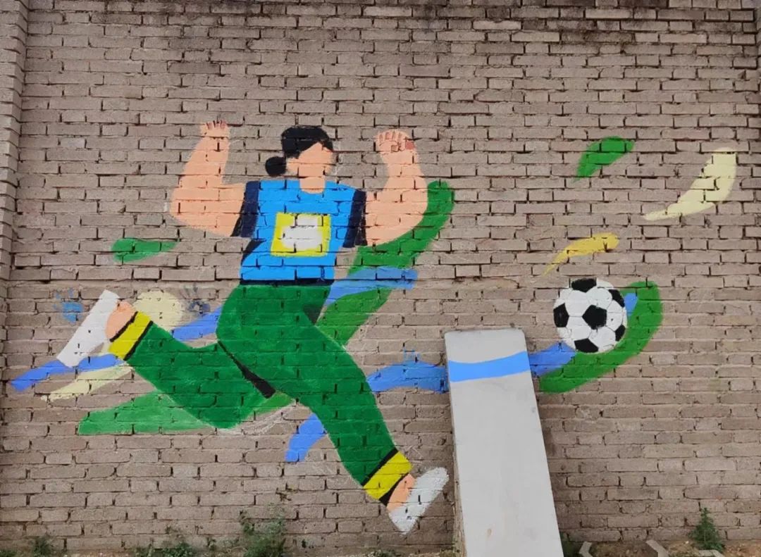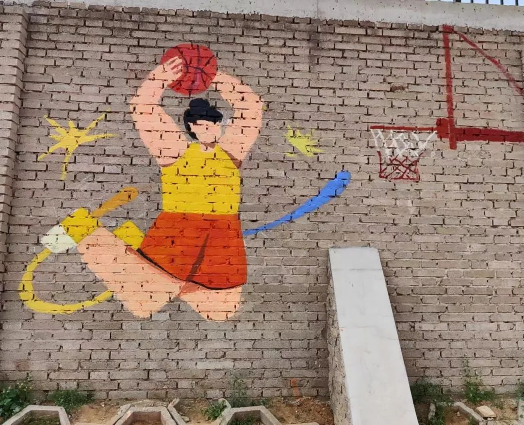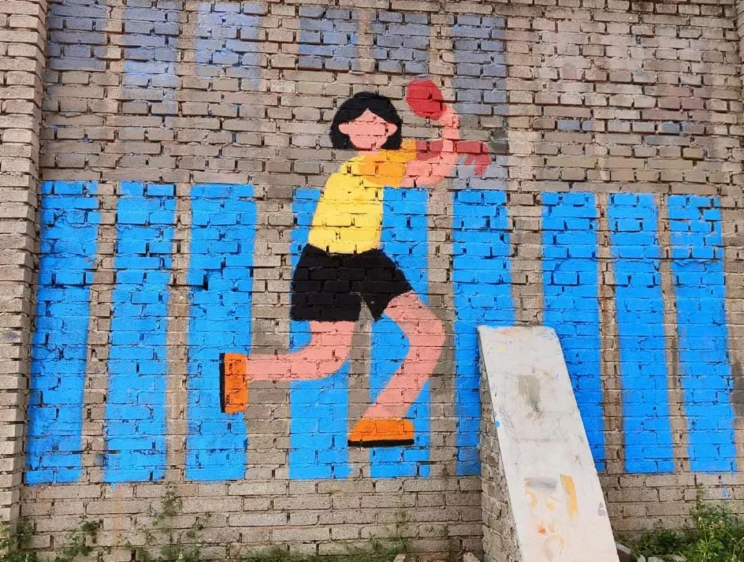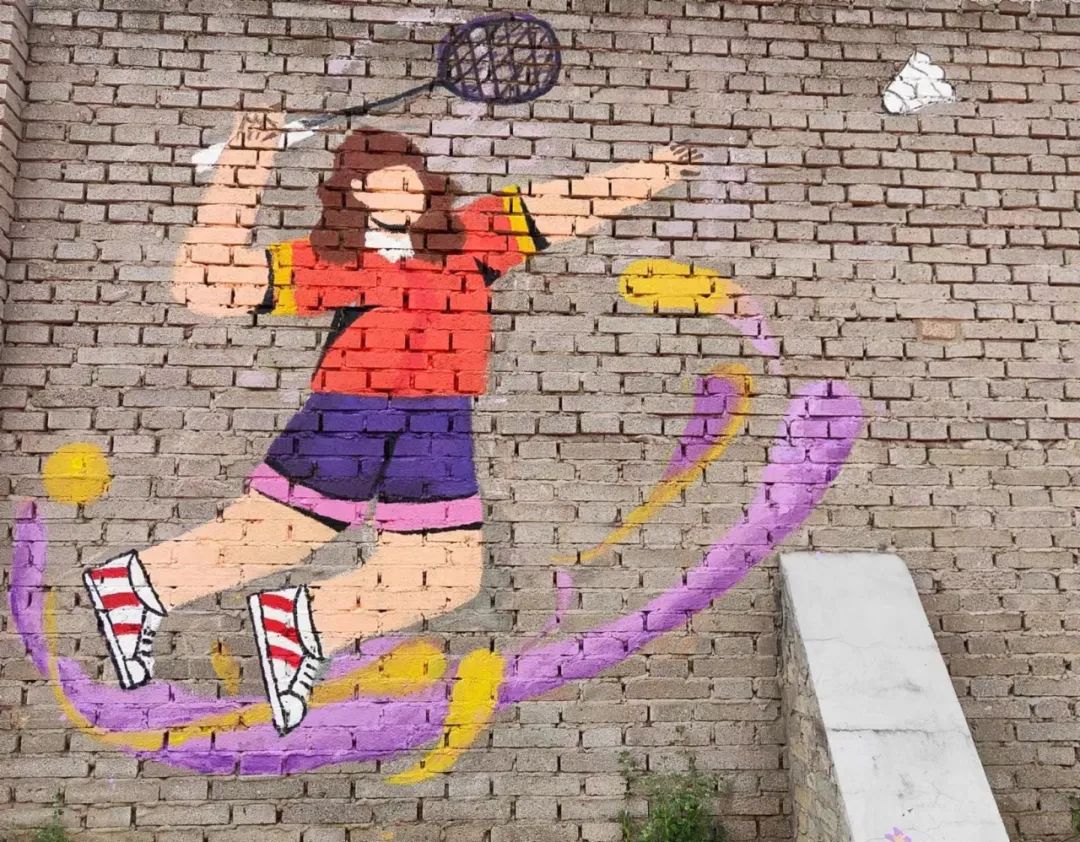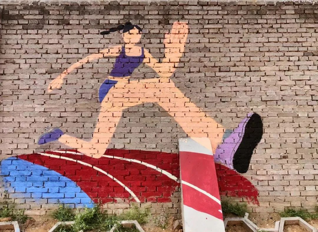 动漫教研室主任王沫,专业课教师赵家英、李幸为本次活动做指导。墙绘整体以运动人物为主题,整套画面是扁平风格卡通人物造型,加入了动感线条突出运动性,绘画过程中融入了学生们更多的创新想法。