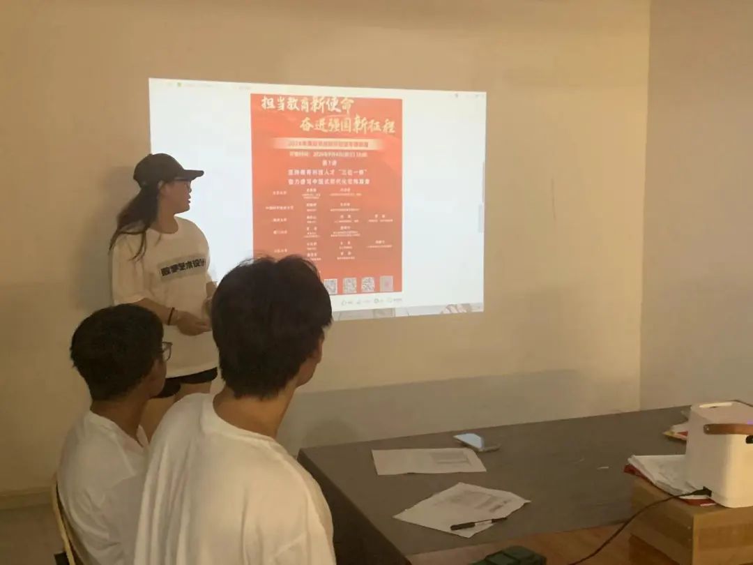 9月4日(周三)16:00,数字艺术设计系团总支在艺术实践中心组织各班入党积极分子和班干部集中观看学习2024年高校党组织示范微党课《坚持教育科技人才"三位一体",奋力谱写中国式现代化宏伟篇章》。