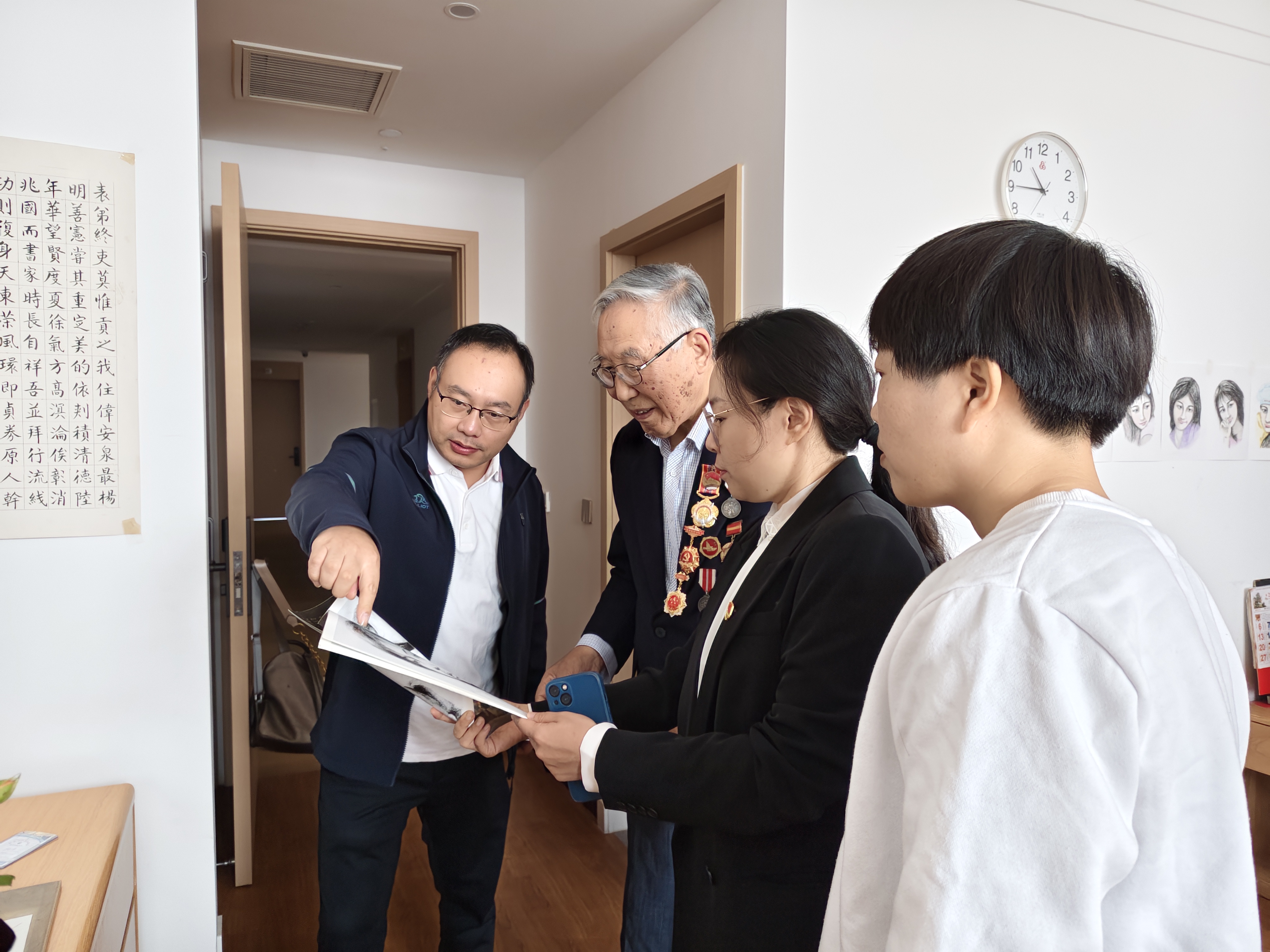 为落实在职党员进社区报到制度的有关要求,数字艺术设计系教师一党支部于10月8日开展了“敬老爱老”主题党日活动,慰问光荣在党74周年的老党员杨泽同志,提前庆祝重阳佳节的到来。