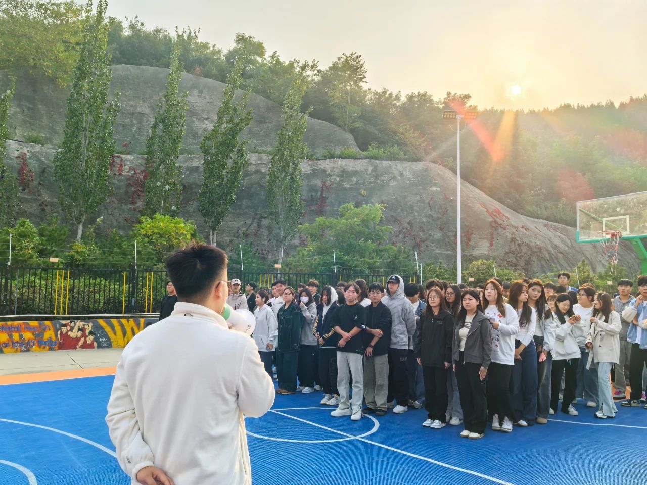 辅导员杨嘉萌老师对本次消防疏散演练活动进行总结:整个疏散过程,同学们沉着冷静、快速有序,展现了良好的应急反应能力和自我保护意识;在生活中,如遇到突发事件,要沉着应对,做好及时报告和安全逃生工作,希望全体师生在生活点滴中牢记消防安全知识,杜绝消防隐患。