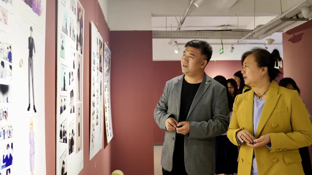 观展过程中,鹿泉艺术实践中心领导与我系教师、同学们亲密交流,共同以直观的视觉体验领略动漫设计专业同学们作为创新前沿探索者的深刻洞察与无限遐想,并为自己喜爱的作品贴“赞”。