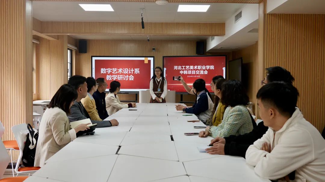 随后,数字艺术设计系领导、教师与韩国教授张智贤、韩语教师蔡雨清一起开展了数字艺术设计系中韩合作教学研讨会。数字艺术设计系将继续深入学习贯彻落实习近平总书记关于学校课程思政建设重要指示精神的实际行动,探索新时代思政教育创新路径的具体实践,激发广大教师思政课程与课程思政的创新潜能和主动性,用实际行动培养具有深厚专业功底和坚定理想信念的技能型人才。