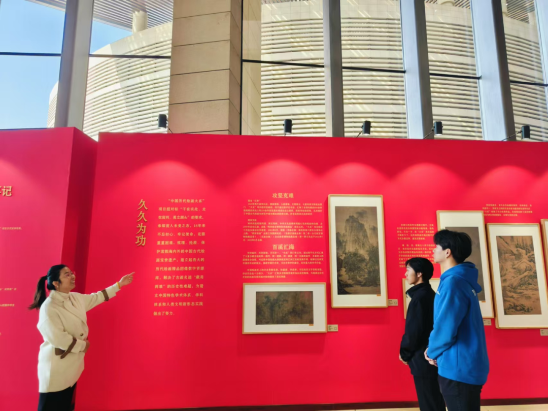 在保定市美术馆,同学们在黄琪老师的带领下观看了“盛世修典”--《中国历代绘画大系》成果展。中国历代绘画是中华优秀传统文化的瑰宝,是中华民族文化自信的重要体现。通过黄琪老师的讲解和现场观摩画作,不仅激发了同学们学习绘画艺术的兴趣,同时使同学们坚定了历史自信、文化自信,自觉增强做中国人的志气、骨气、底气。