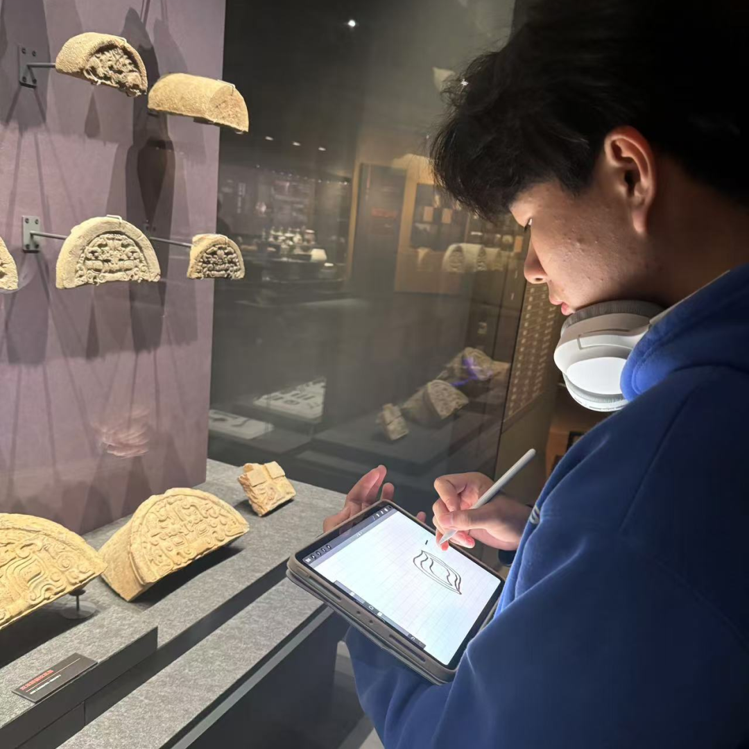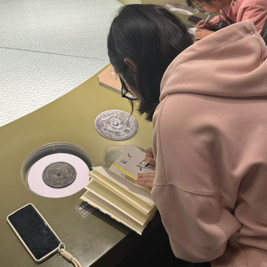 白雪老师在保定市博物馆展厅内的授课形式新颖,理论知识与实景文物藏品相结合优势突出,是我系沉浸式教改实践的一次尝试,全程互动直观、气氛活泼、趣味盎然,同学们感受到了在教室之外学习的新鲜效果。“历史是最好的教科书”,在博物馆里同学们临摹着文物上的传统纹样,惊叹于古人巧夺天工的技艺,也更加直观地感受到了中华文化源远流长、博大精深,文化自豪感油然而生。