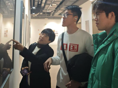 刘子莹老师与同学们在现场参观了造型基础优秀作品展,帮助学生分析学生优秀作品的亮点。对比自身发现在相关课程中遇到的问题,总结今后专业提升中的经验办法。