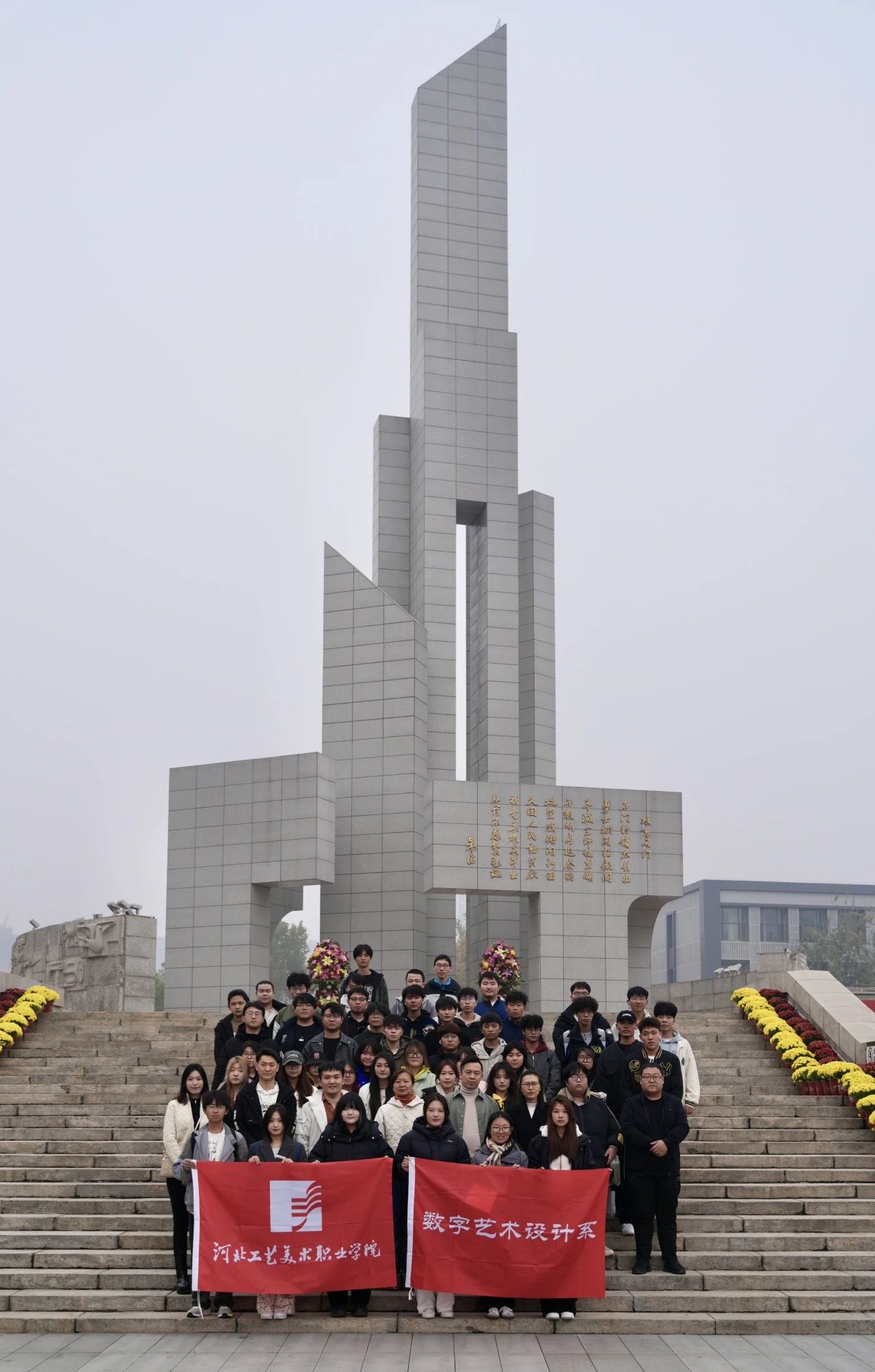 2024年11月12日是石家庄解放77周年纪念日。为纪念石家庄解放,回顾历史,缅怀先烈,传承红色文化,我系组织24级动漫设计专业(中韩合作办学)大一新生,前往石家庄解放广场和纪念馆参观学习。