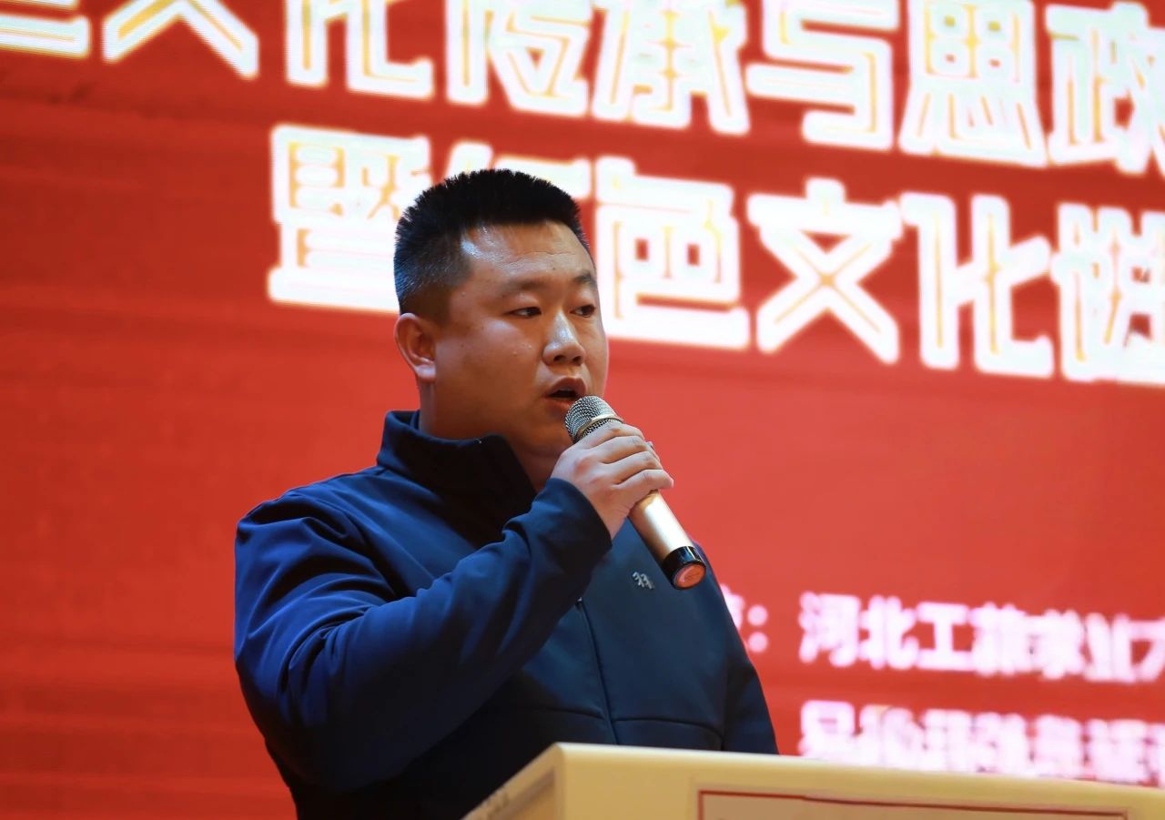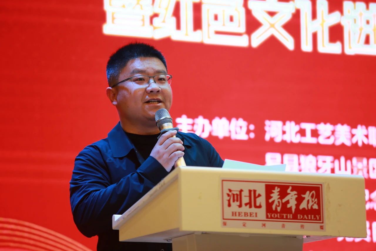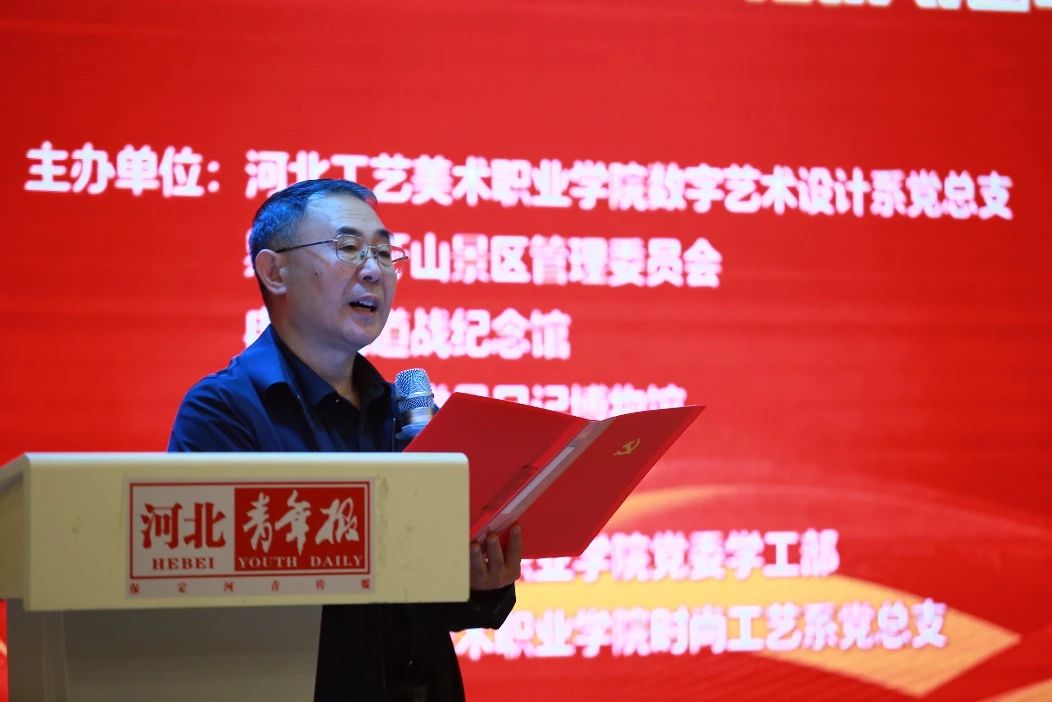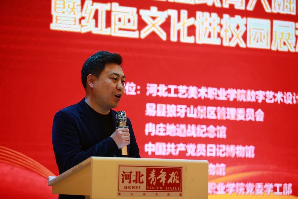 河北工艺美术职业学院党委书记殷永桥首先发表了致辞,他对所有参与活动的单位和人员表示热烈的欢迎和衷心的感谢,并强调了红色文化传承与思政育人融合发展的重要性。