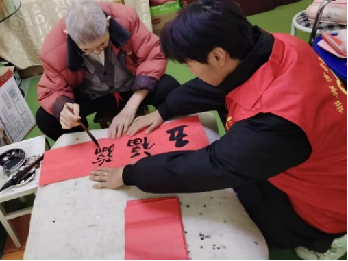 在此期间我拜访了社区的王校长,在王校长的家中协助他为居民一起写下一幅幅春联。