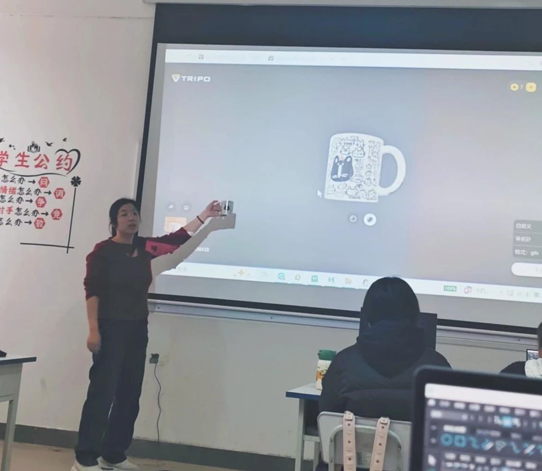 游戏艺术设计专业教研室主任黄琪老师,带领着《三维模型制作》课程组白雪、赵晨汐等老师,积极的把Deepseek、即梦、Tripo等AI软件引进课堂。在三维创作的奇妙世界里,这些AI工具展现出了强大的能力。