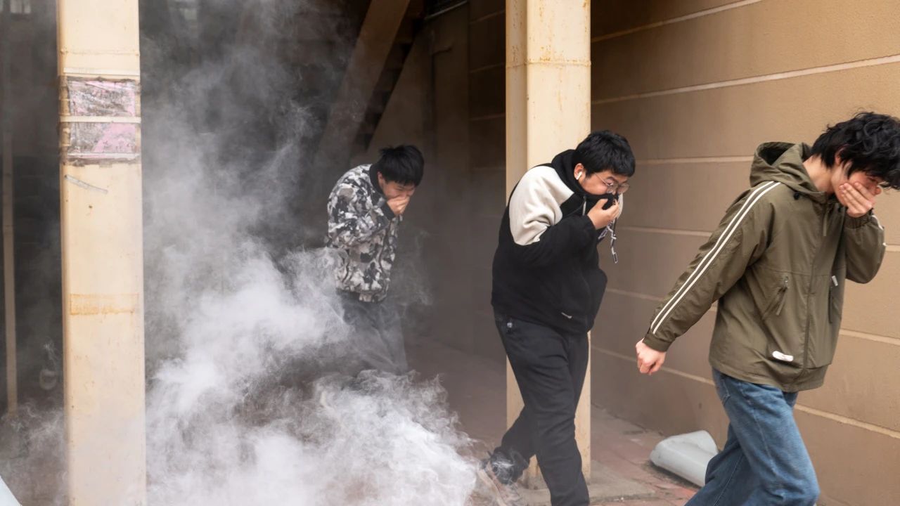 3.正确逃生姿势:用湿毛巾或衣物捂住口鼻,弯腰低姿前行,避免吸入浓烟。
