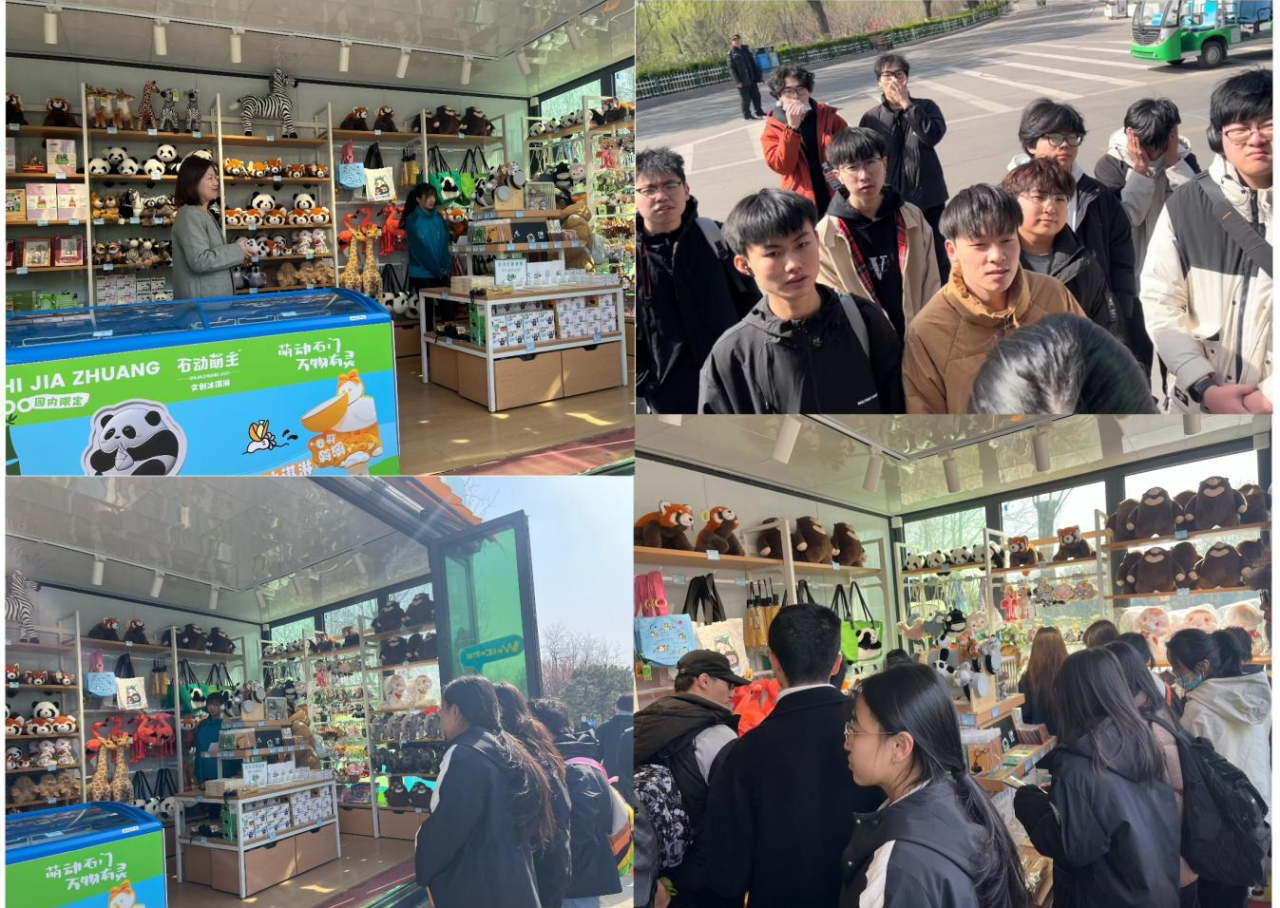 武翼飞老师带领学生探访石家庄动物园文创中心"石动萌主",沉浸式体验IP孵化实战全流程——从创意设计到生态叙事构建。文创中心王经理向同学们详细讲解了石家庄动物园与我校携手共创的动物形象及周边产品。