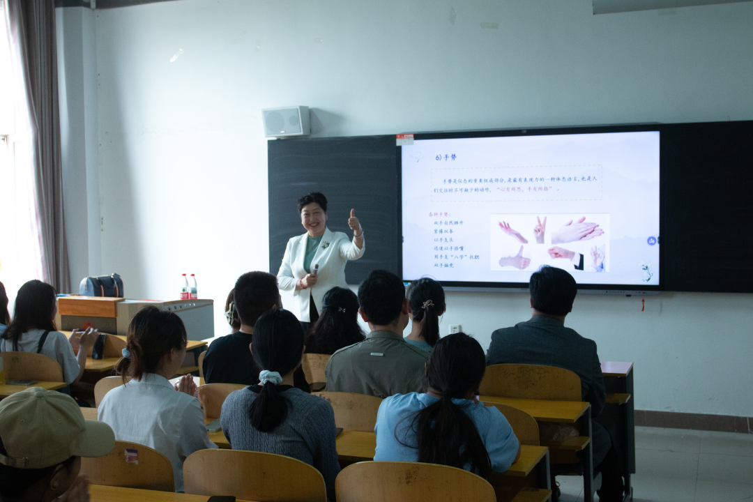 讲座中,她紧扣仪表仪态、沟通技巧、社交规范等多个关键维度展开深度分享。无论是校园内与师生的日常交往,还是未来初入职场的社交场景,这些实用知识都将成为同学们的 “社交利器”,助力大家在不同场合中自信从容、脱颖而出。