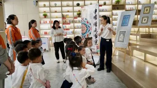 通过给现场的小朋友讲解传统图案,实现知识传递和美育浸润。