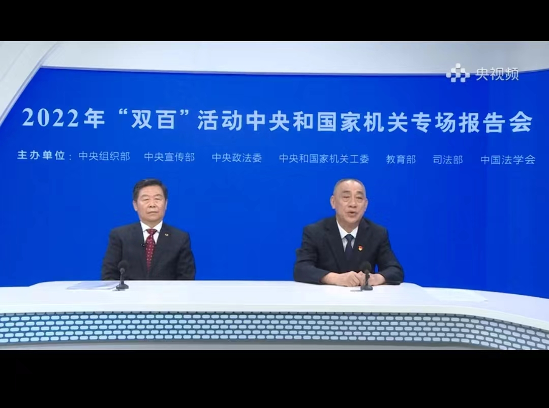 “百名法学家百场报告会”法治宣讲活动--中央和国家机关专场报告会是推进习近平法治思想进高校、进课堂的重要载体和资源。