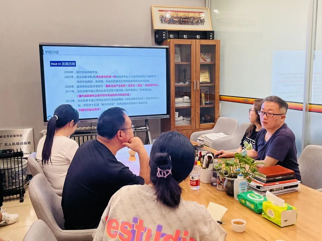 石家庄职业技术学院动画学院院长尚晓雷、副院长万芳芳热情接待了我系一行人。双方就数字艺术设计专业建设、专业认证、课堂教学改革、教学实训室建设等问题进行了交流座谈。