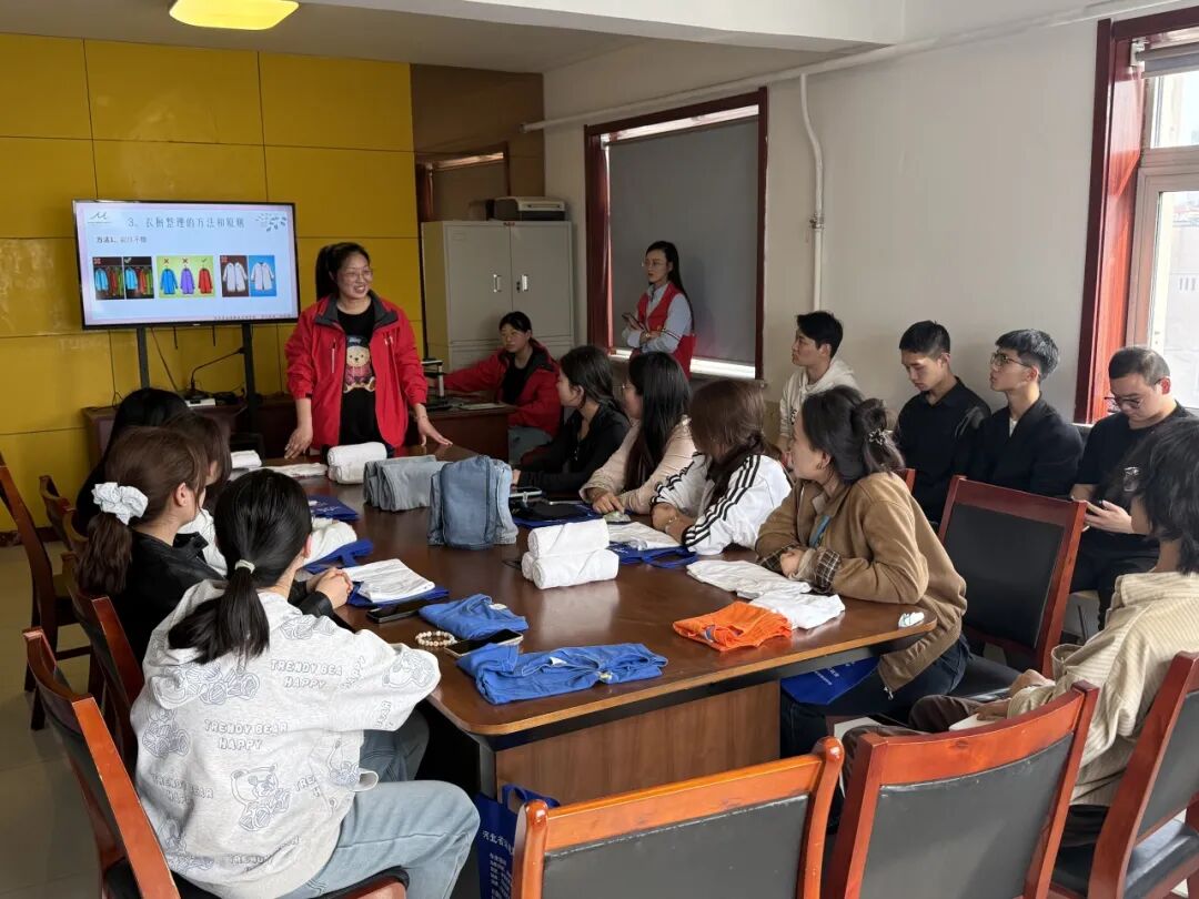 活动开始,社区工作人员为志愿者们开展衣物收纳整理专项培训。从衣物分类、折叠技巧,到柜体规划、便民收纳妙招,干货满满、简单实用。同学们认真听讲、动手实操,快速掌握适老化整理方法。