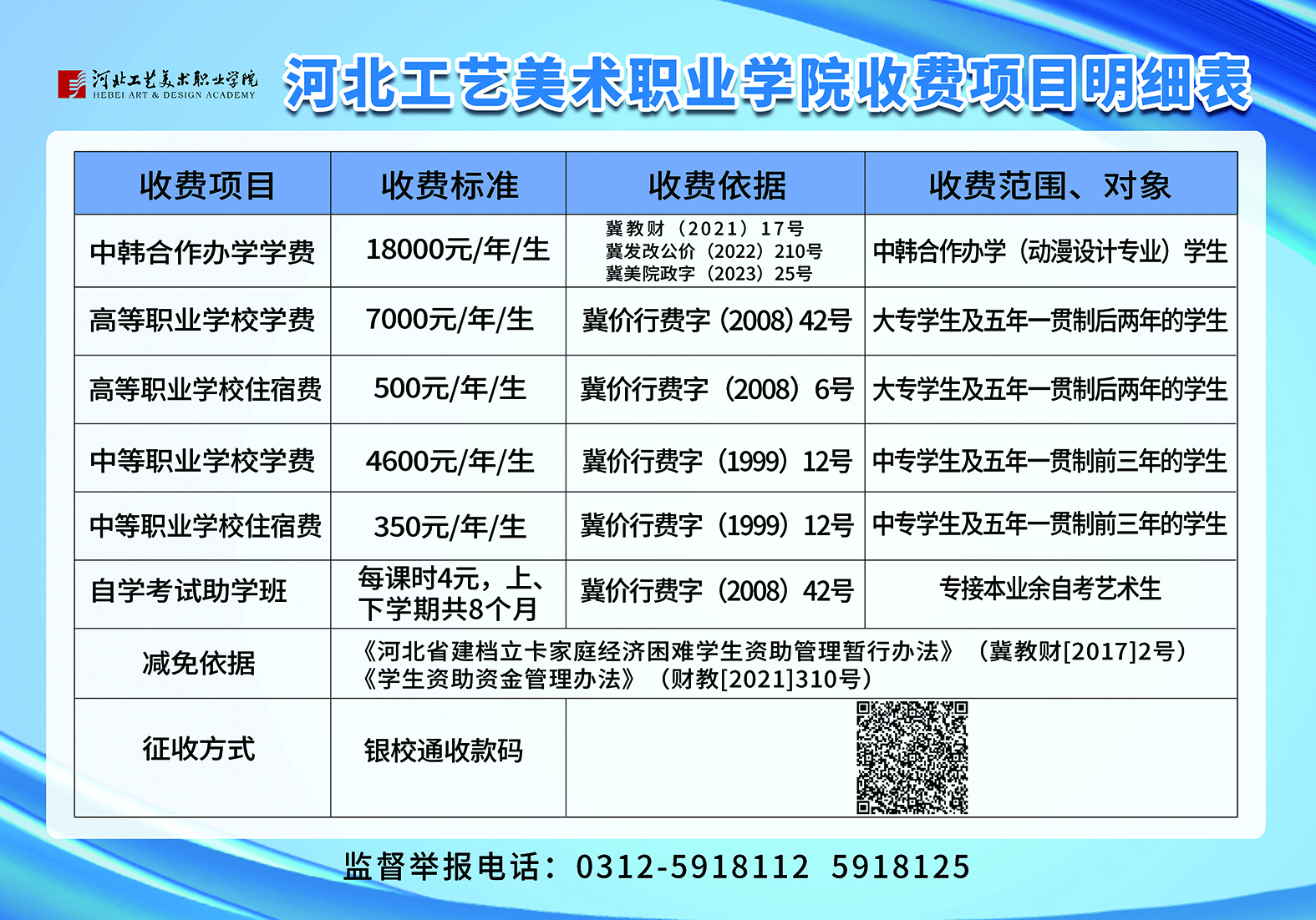 河北工艺美术职业学院收费项目明细表