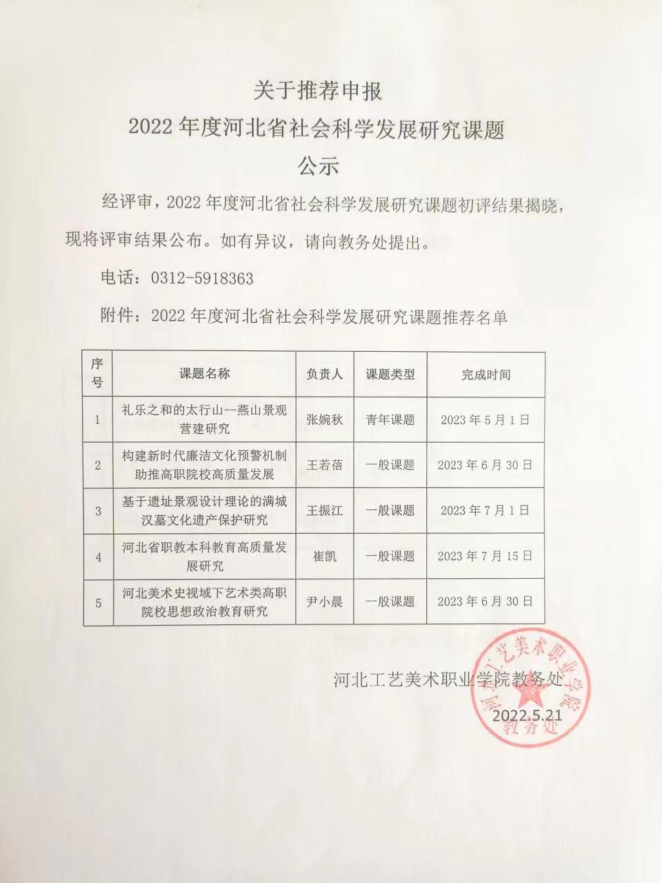 关于推荐申报2022年度河北省社会科学发展研究课题公示