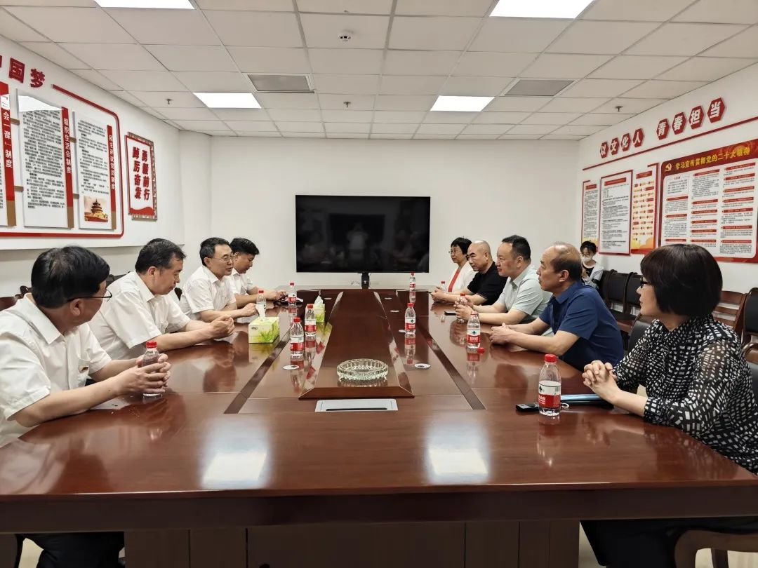 随后,学院领导和市文旅局党组成员副局长平涛、市文旅局机关党委二级主任科员霍耀增、市博物馆副馆长柳淑巧、市美术馆馆长姚晓君、市美术馆党支部书记副馆长阴军营等进行了座谈交流。会上,学院党委书记殷永桥介绍了近年来学院的发展情况,表示博物馆与高校合作是推动文博行业发展、提升教育质量、推进博物馆建设的一项重要探索。平涛同志介绍了博物馆、美术馆近年的工作开展情况,希望能加强馆校合作,更好释放聚合效应,实现双赢。