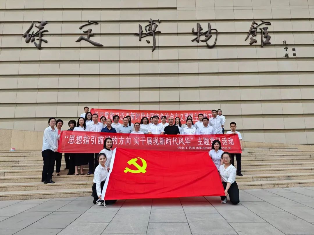 为推动学院主题教育走深走实,丰富“读书班”学习形式,紧扣弘扬传统文化,助力保定城市建设,提升文化软实力,5月21日下午,机关党总支组织机关各支部全体党员一行30余人赴保定市博物馆、保定市美术馆开展“思想指引前进的方向 实干展现新时代风华”主题党日活动。学院党委书记殷永桥、党委副书记赵云耕、纪委书记王立新、党委委员副院长杨庆华以普通党员身份参加此次活动。