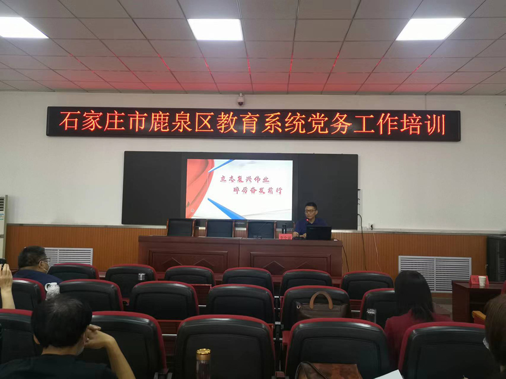 党的二十大是在全党全国各族人民迈上全面建设社会主义现代化国家新征程、向第二个百年奋斗目标进军的关键时刻召开的一次十分重要的大会。为营造学习宣传贯彻党的二十大精神的浓厚氛围,有效推动习近平新时代中国特色社会主义思想入脑入心,5月25日上午,我院思政部教师李全诚应邀为石家庄市鹿泉区教育系统作党的二十大精神宣讲培训,鹿泉区各中心校、直属学校和局机关主管党务工作领导和党务工作者五十余人参加了讲座。