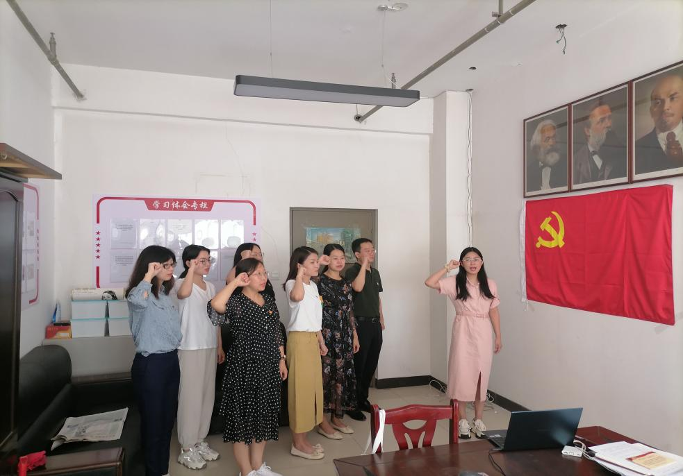 心中有信仰,脚下有力量。“我志愿加入中国共产党,拥护党的纲领,遵守党的章程……”一声声慷慨誓词提醒着党员们不忘初心、牢记使命。通过集体重温入党誓词,党员教师们再次接受党性的洗礼。