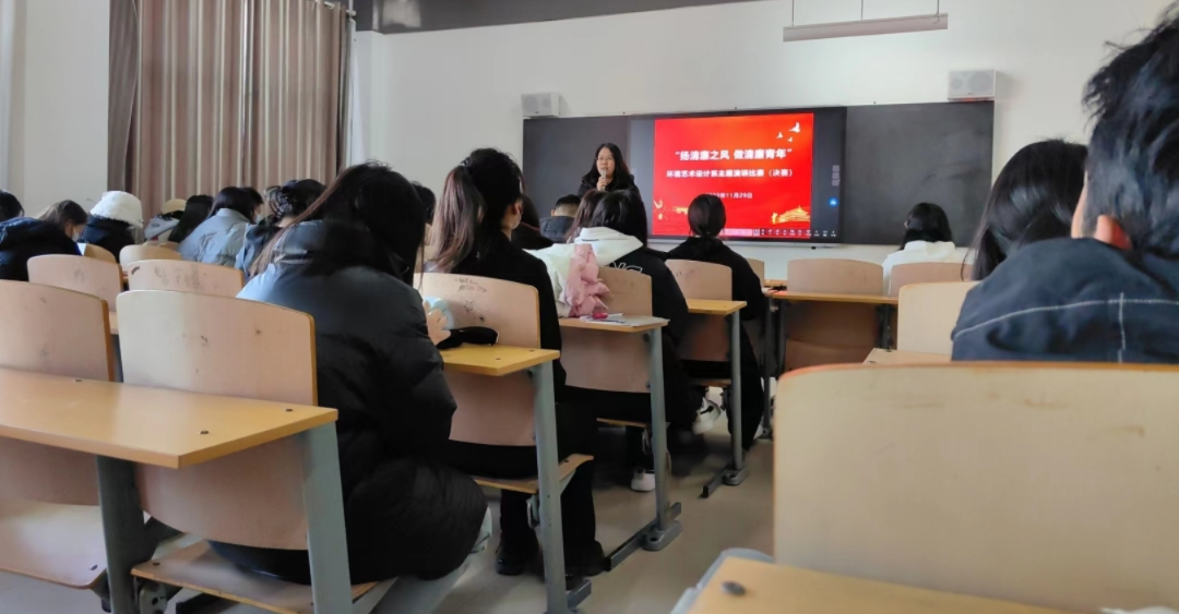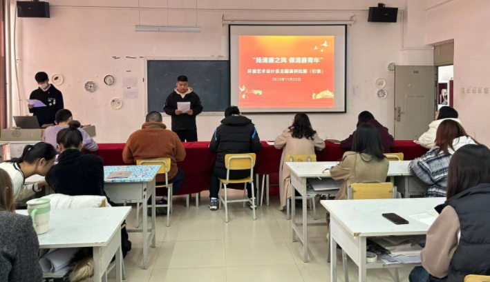 为进一步巩固学习贯彻习近平新时代中国特色社会主义思想主题教育成果,丰富师生的学习形式,引导师生传承红色基因,用青年之声诠释廉洁信仰,用青年话语宣传党的创新理论。近期,环境艺术设计系组织举办了“扬清廉之风,做清廉青年”主题演讲比赛,本次比赛由环境艺术设计系党总支师生一支部承办。