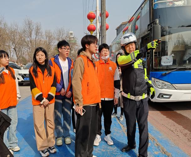 活动中,正定交警支队尚队长为师生们讲解了交通规则与交通安全知识。在他的指导下,环境艺术设计系师生分组到十字路口协助交警维护交通秩序。通过亲身实践,师生们增强了交通安全意识,提升了实践能力和团队协作能力,充分展示了新时代青年的风貌与担当。
