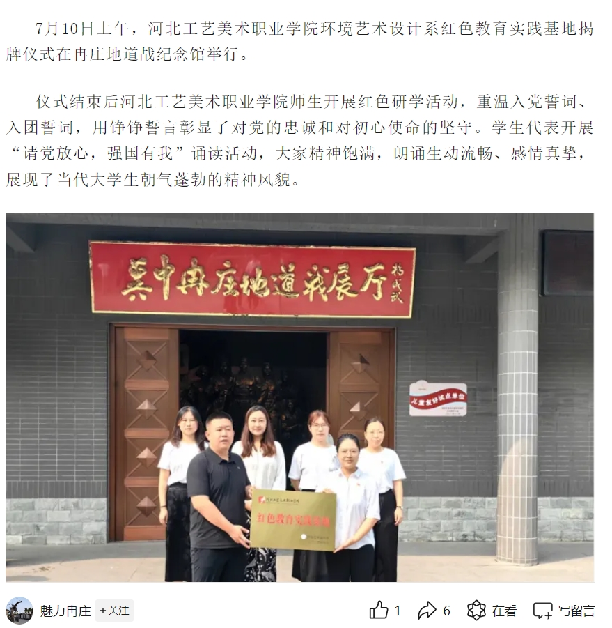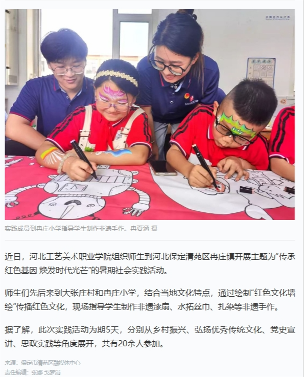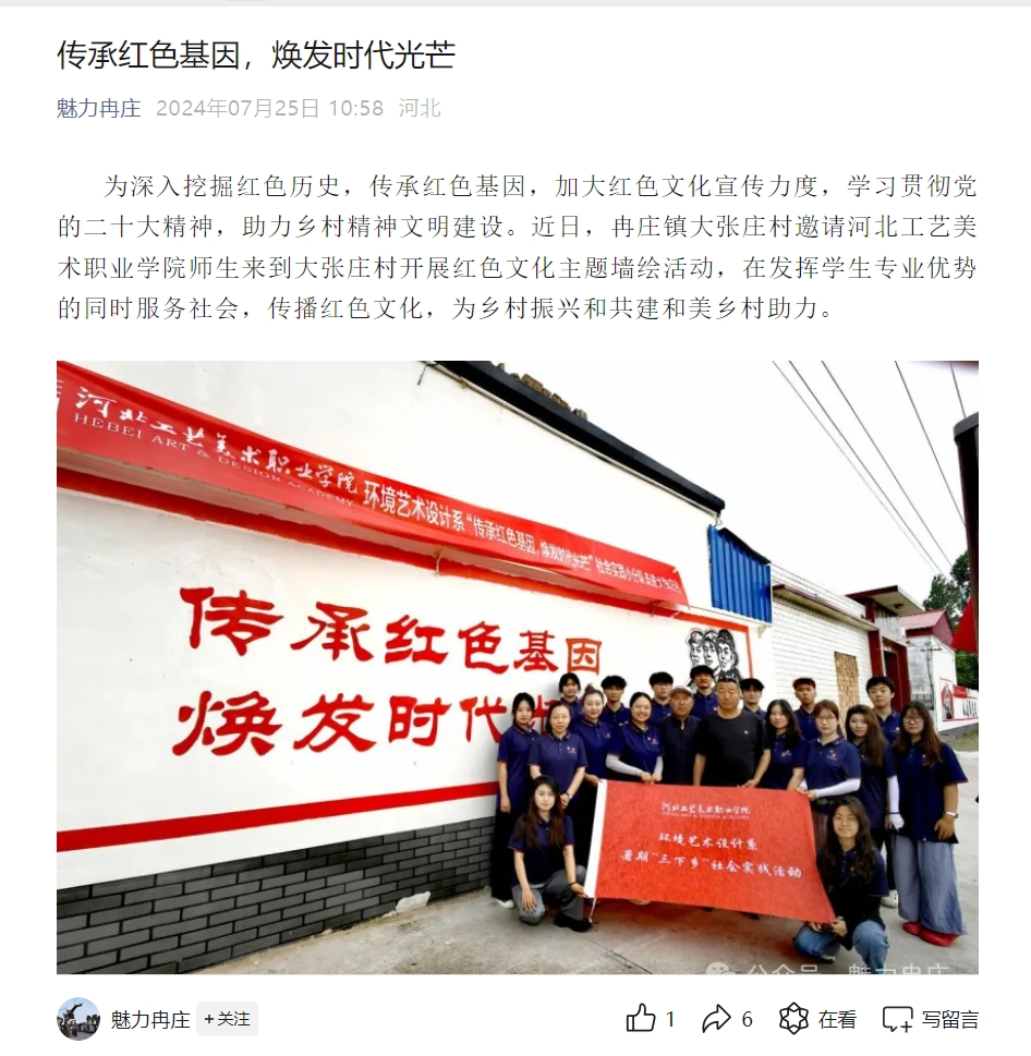 环境艺术设计系2024年暑期社会实践活动在“魅力冉庄”微信公众号报道。