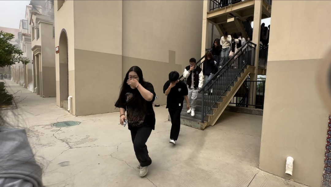 随着警报响起,应急疏散演练拉开帷幕。同学们在老师的引导下弯腰捂鼻依次行走,穿过浓烟壁障,井然有序地按照疏散路线,快速撤离到安全区域,随即各班清点班级人数,逐级汇报。整个演练过程安全、快速、有序,达到了良好的效果。