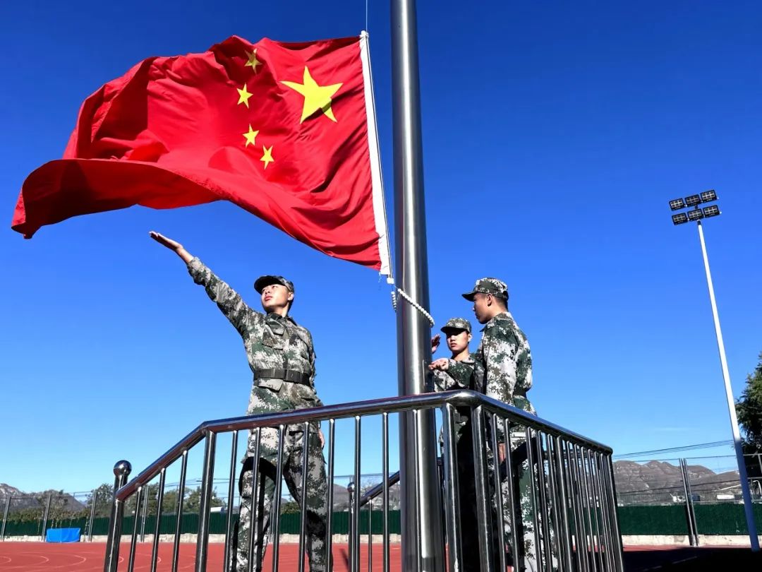 伴随着激昂的国歌声响起,全体师生面向国旗肃立致礼,国旗护卫队以整齐划一的队形、铿锵有力的步伐、坚定不移的眼神,展现出新时代新青年的飒爽英姿,凝聚起团结奋斗的磅礴力量。