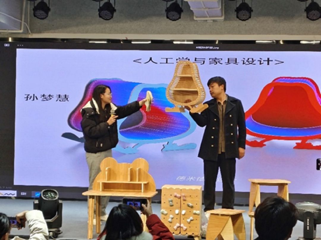 环艺 2307、2308、2309 班的《人工学与家居设计》课程圆满结课,2024年11月26日上午,环境艺术设计系于鹿泉艺术实践中心多媒体报告厅举办了结课展示暨优秀作品表彰活动。环境艺术设计系主任王振江,任课教师张雅芳,德米德兰设计公司创始人蔡明志,兼职教师侯安鑫、师明出席了本次活动。