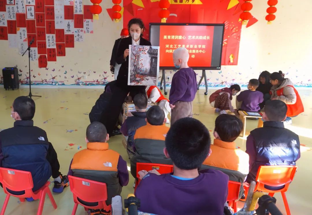为深入贯彻党的二十届三中全会精神,不断强化党建引领,教育引导广大师生将专业教学成果运用到服务社会的具体实践中,展现当代青年的社会责任感与奉献精神。12月4日,美术系党总支联合环境艺术设计系党总支组织师生志愿者走进保定市儿童福利院开展“美育浸润童心 艺术共助成长”主题捐赠活动,学校党委副书记赵云耕,市民政局党组成员、市民政事业服务中心主任刘军,美术系党总支书记张雅芳、环境艺术设计系党总支书记尹小晨出席此次活动,本次活动邀请优秀校友、德米设计有限公司创始人蔡明志参加,市民政事业服务中心办公室主任吴长江主持。