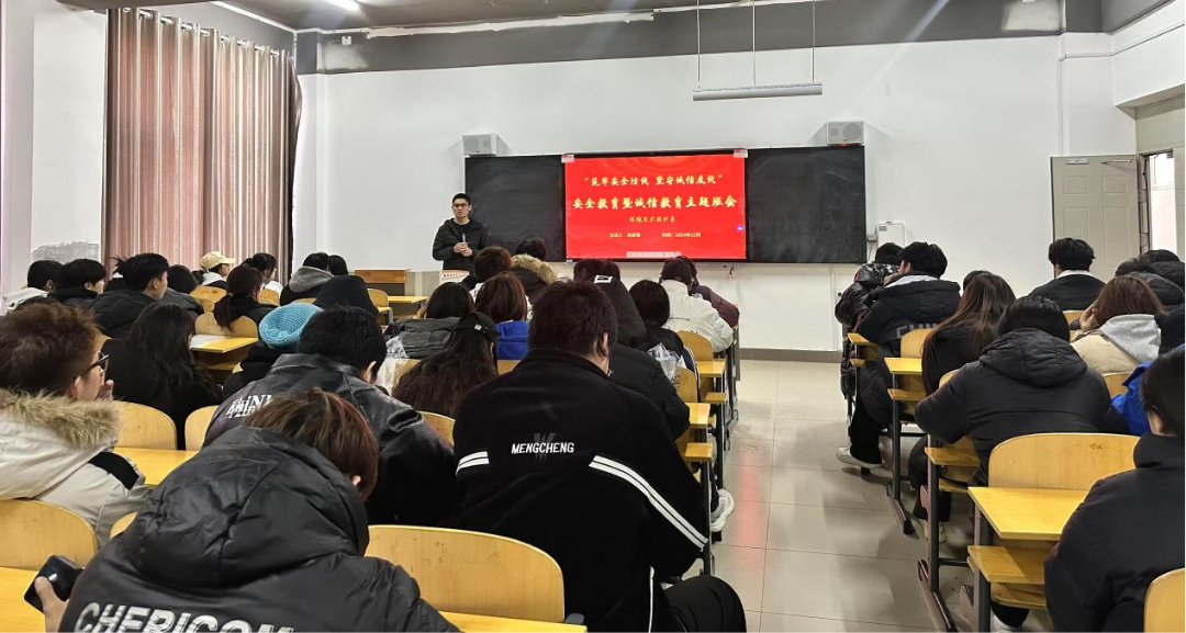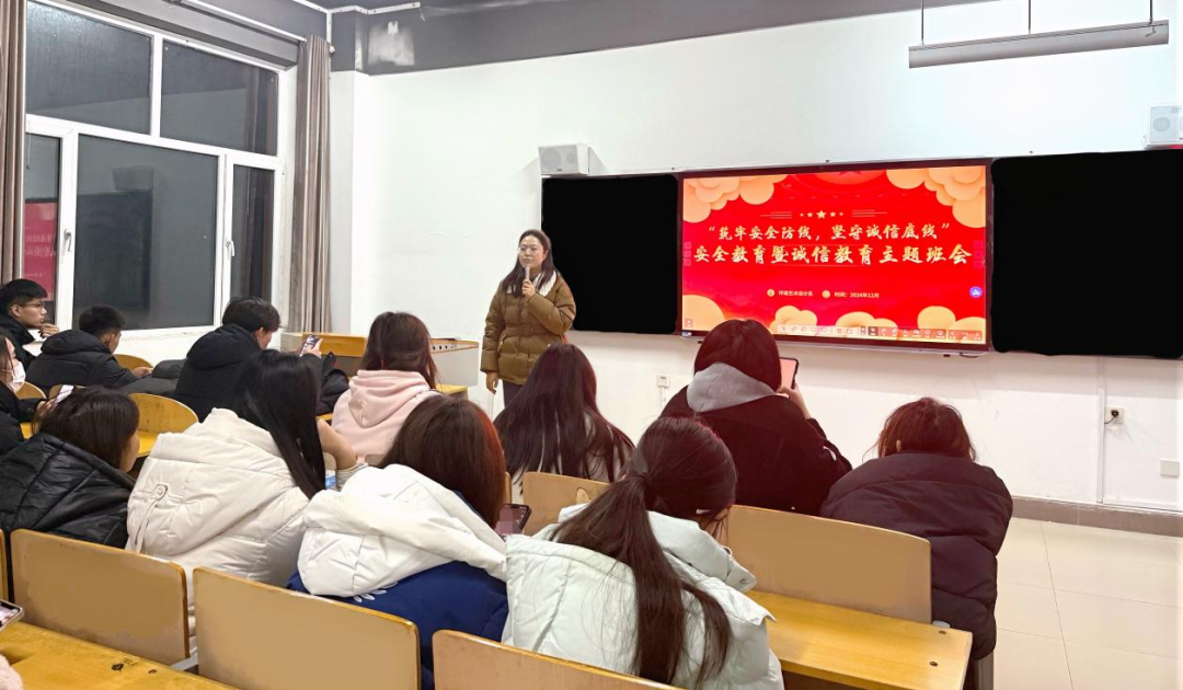 为进一步加强环境艺术设计系学风建设,引导学生树立正确的价值观,培养学生的诚信品质,同时增强学生的安全防范意识,营造安全稳定的校园环境,近日,环境艺术设计系2024级辅导员组织开展假期安全教育暨诚信教育主题班会。