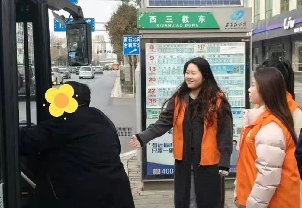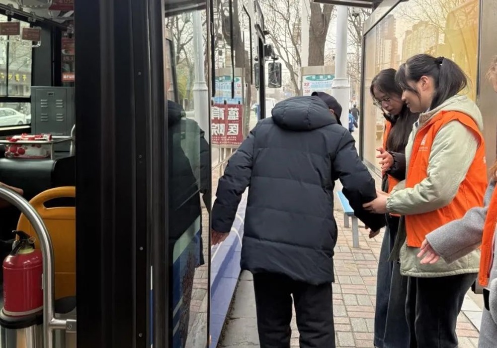 活动中,师生们化身秩序维护员,引导乘客有序排队候车,为乘客讲解公交线路图,搀扶行动不便乘客上车。确保乘客安全乘车,让公交站的秩序井然有序。