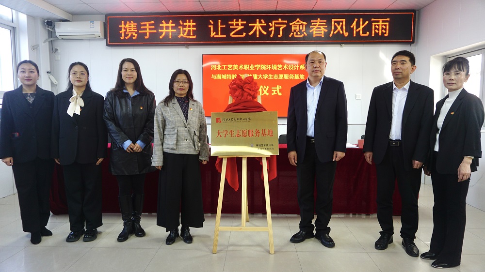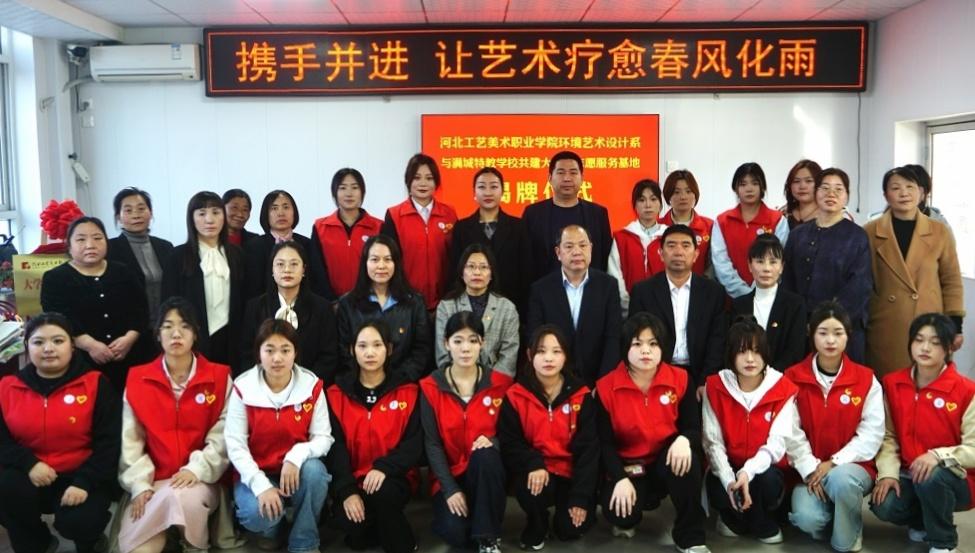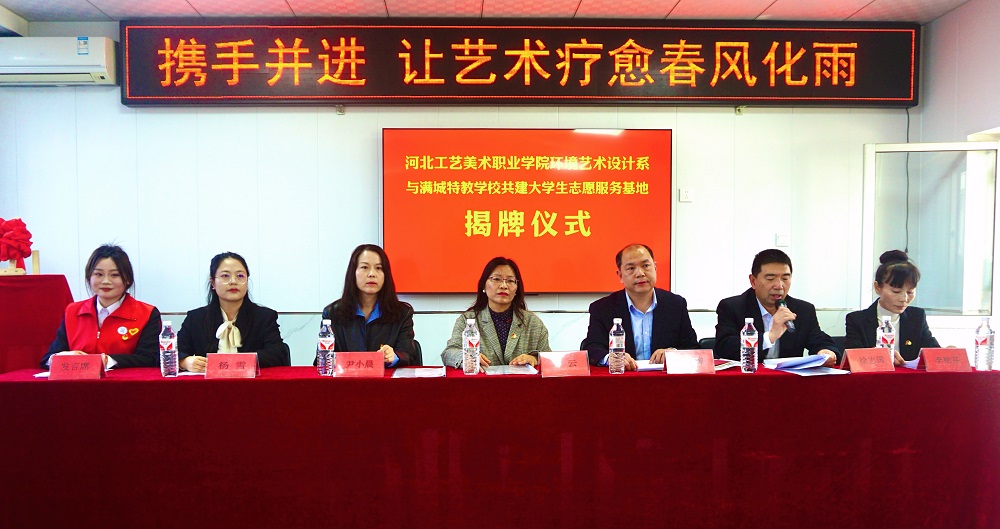2025年3月20日,河北工艺美术职业学院环境艺术设计系与保定市满城区特教学校共建的“大学生志愿服务基地”揭牌仪式在满城区特教学校隆重举行,河北工艺美术职业学院党委学工部部长邓云,环境艺术设计系党总支书记尹小晨,满城区委教育工委委员李光辉,环境艺术设计系团总支副书记杨雪,满城区特教学校校长李艳芬出席仪式,活动由满城区教体局基教股股长徐志国主持。