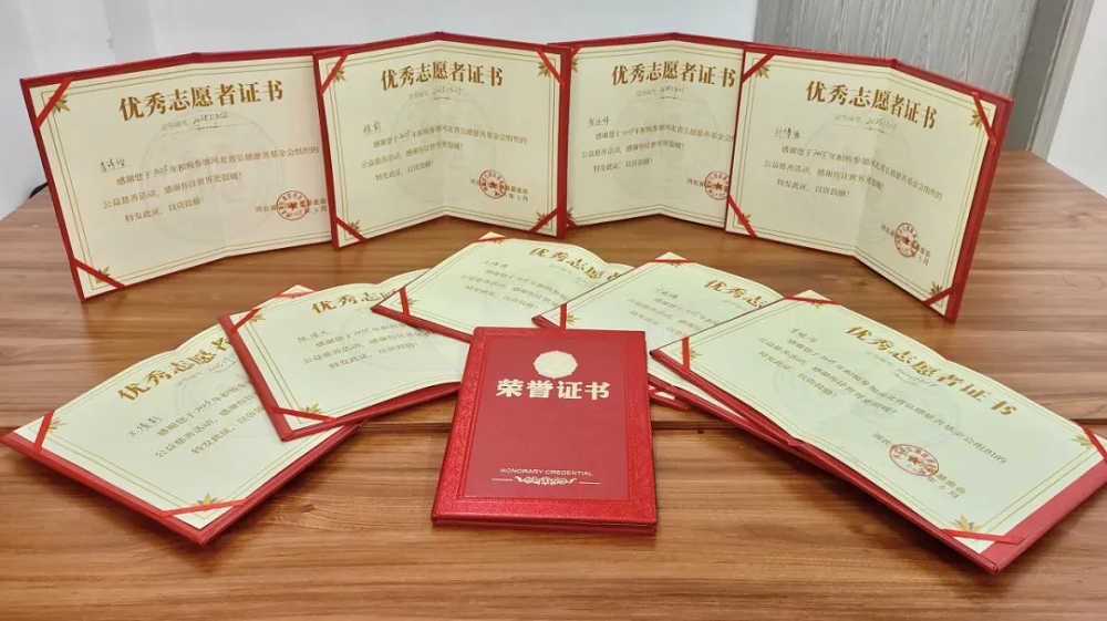为鼓励同学们积极参与志愿服务活动,河北省弘德慈善基金会为我系学生颁发荣誉证书。