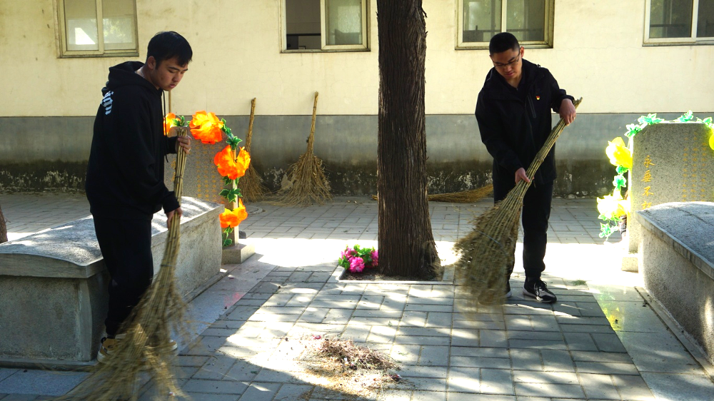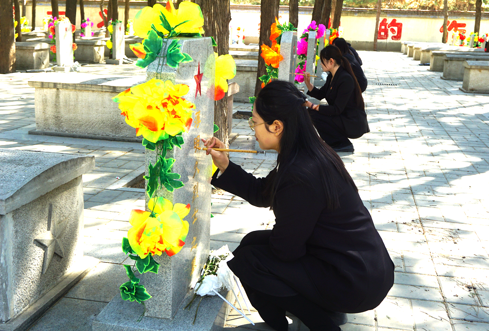 师生们前往烈士陵园墓区,为烈士擦拭墓碑,对碑文进行描摹填漆,用实际行动缅怀革命先烈丰功伟绩。