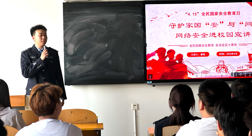 为坚定不移贯彻总体国家安全观,提升师生的国家安全意识和网络安全素养,4月16日,环境艺术设计系开展网络安全普法宣讲活动,特邀请保定市公安局满城区分局网络安全保卫大队翟彬警官为2024级师生进行宣讲,满城区分局网络安全保卫大队教导员严永利参加此次活动。