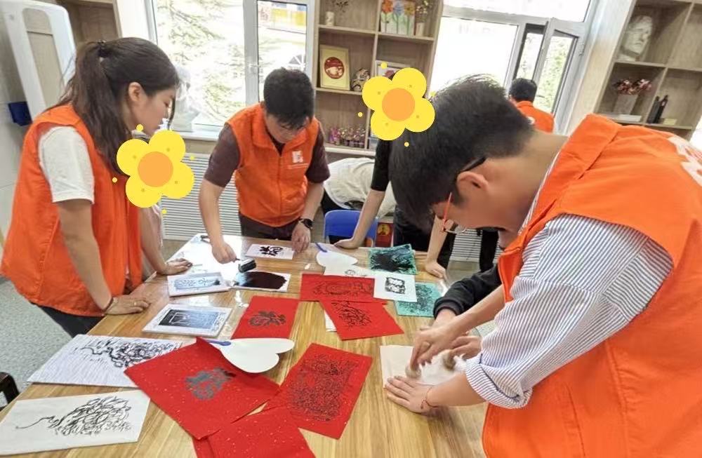 活动现场,师生们手持刻有书法和经典图案拓板,耐心地向孩子们讲解拓印技法。孩子们专注地模仿着每一个动作,当精美的版画作品跃然纸上,他们的脸上绽放出纯真的笑容。