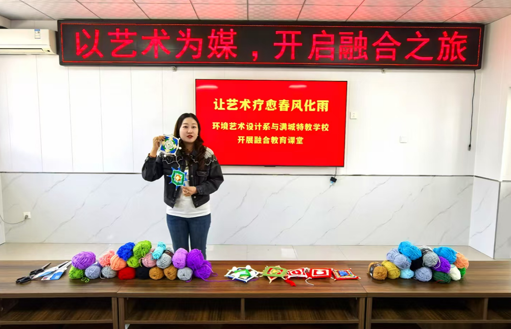 近日,环境艺术设计系与满城特殊教育学校共建项目再添新章。环境艺术设计系党总支教师二支部与团总支联合组织青年师生志愿者赴满城特殊教育学校携手开启了一场别开生面的艺术教育实践活动,将专业课堂搬进特教学校,为特殊儿童带来了一场充满创意与温暖的艺术之旅。