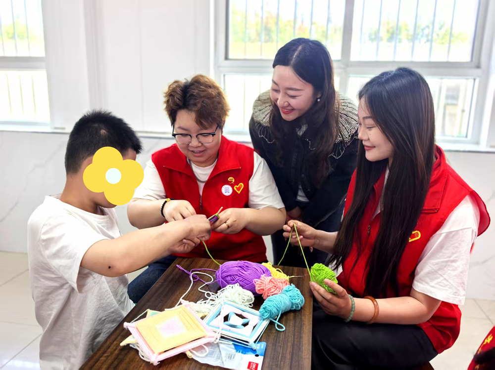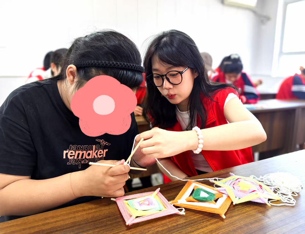 课堂上,大学生志愿者与特教学生共同学习创作,将材料用心用情缠绕编织,一根根普通的线材在他们手中逐渐变成了充满童趣和创意的作品。活动现场欢声笑语不断,孩子们脸上洋溢着自信和快乐的笑容。