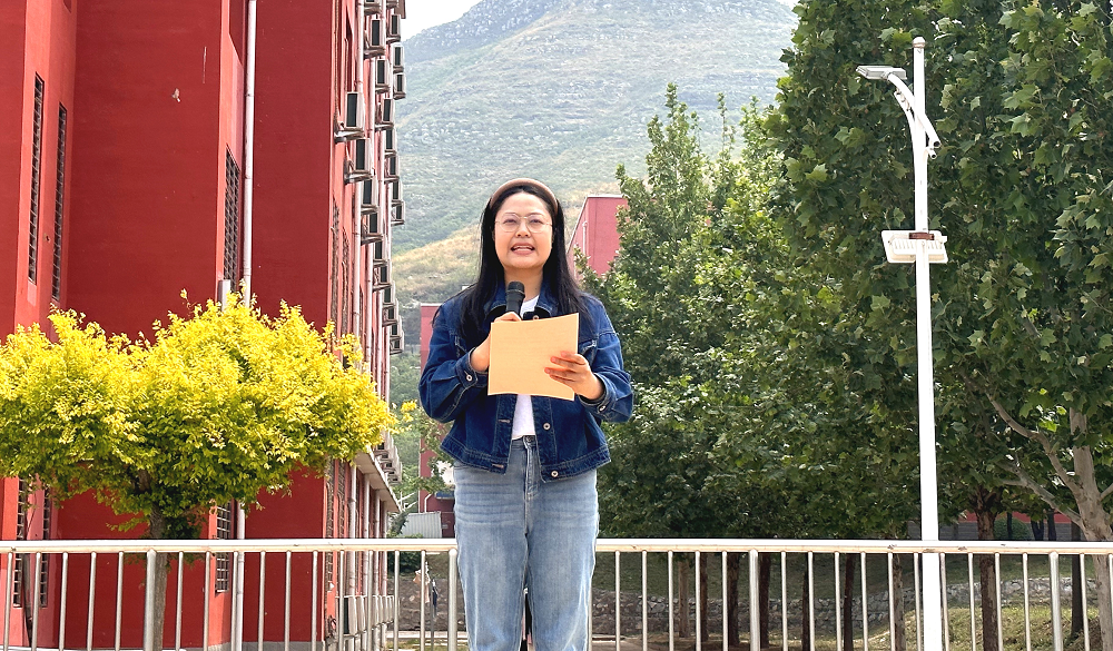 杨雪老师发表国旗下讲话,她勉励青年学生要学习习近平总书记给谢依特小学戍边支教西部计划志愿者服务队队员重要回信精神,自觉将个人志向与国家前途命运紧密相连,坚定理想信念,厚植家国情怀。