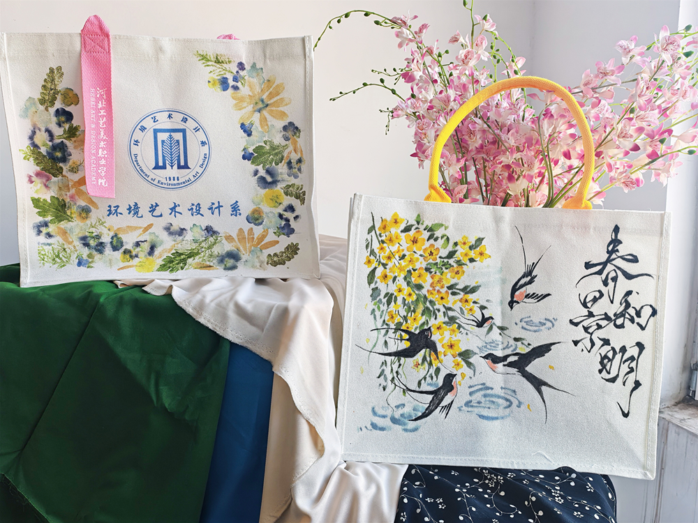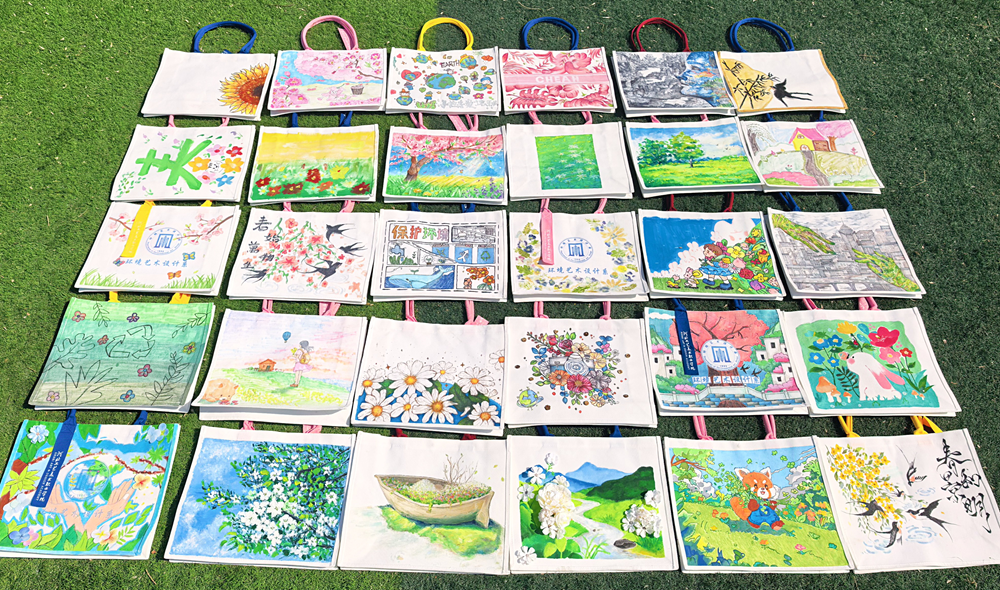 本次大赛中,同学们充分发挥专业所长,以帆布包为载体进行彩绘创作,将对自然的热爱与环保的理解融入作品。一幅幅作品主题鲜明、创意十足,既勾勒出春日自然的盎然生机,也创意表达低碳环保理念,让大家在创作中体会艺术疗愈魅力,深化生态保护意识,实现专业知识与环保实践的有机融合。