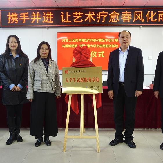 2025年3月20日,河北工艺美术职业学院环境艺术设计系与保定市满城区特教学校共建的“大学生志愿服务基地”揭牌仪式在满城区特教学校隆重举行,河北工艺美术职业学院党委学工部部长邓云,环境艺术设计系党总支书记尹小晨,满城区委教育工委委员李光辉,环境艺术设计系团总支副书记杨雪,满城区特教学校校长李艳芬出席仪式,活动由满城区教体局基教股股长徐志国主持。