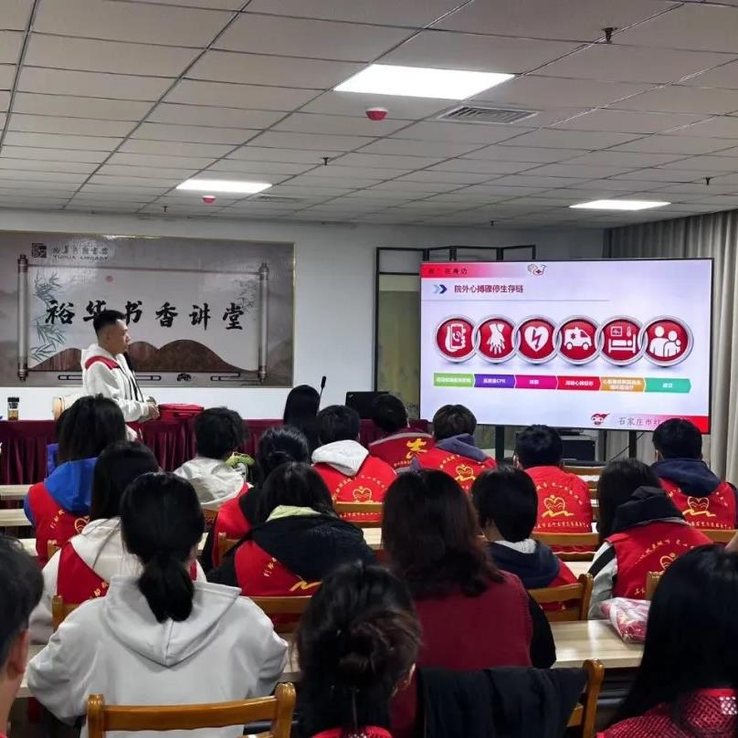 为了进一步提高学生安全意识,提升学生的实践能力,11月3日上午,时尚工艺系团总支联合石家庄市裕华区图书馆、石家庄市红十字会救护中心在裕华区图书馆举办了关爱生命急救培训、学习、宣传活动。 在红十字会的心搏骤停急救心肺复苏理论讲座中,重点强调了心脏骤停时最初“黄金四分钟”的至关重要性。判断患者情况是关键,可通过轻拍呼喊查看有无反应、触摸颈动脉确认搏动来初步评估,了解了AED的工作原理。这些知识为实施心