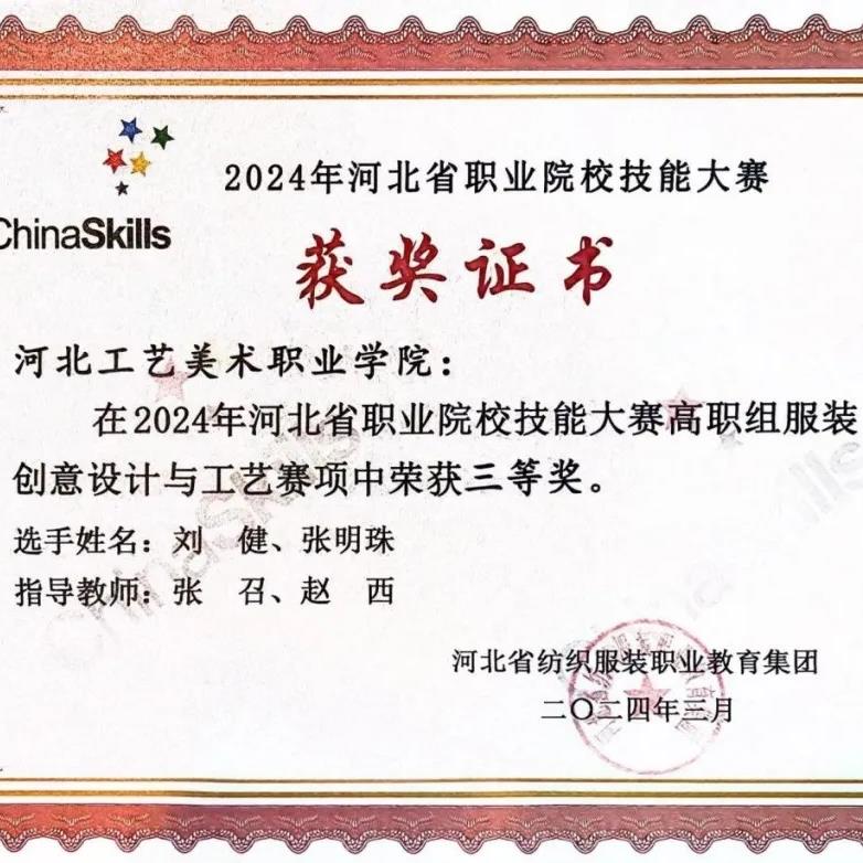 喜报|时尚工艺系学生在河北省职业院校技能大赛中喜获三等奖