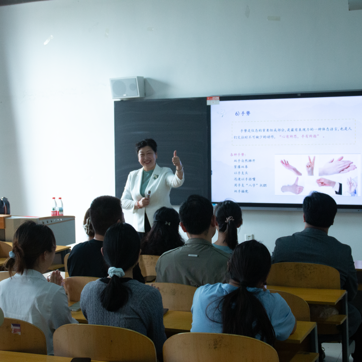 在青春活力肆意绽放的大学校园里,社交礼仪如同点亮人际交往的璀璨明灯。为助力大学生提升个人素养,掌握开启美好人际关系的密钥。我系特邀张彤老师举办“以美好形象,展青春风采——大学生社交礼仪”讲座。张彤老师长期深耕社交礼仪领域,在学界与业界成绩斐然。她现任河北省礼仪文化教育学会副会长、河北省礼仪指导师培训主讲教师、2024年河北省职业院校技能大赛职业礼仪裁判、河北省公务员面试考官、河北省家协督导员、保定市